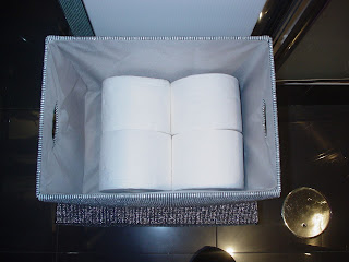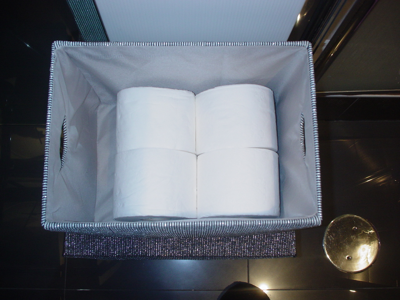 e assim pode guardar duas coisas importantes: rolos de papel higiénico ( para ter sempre à mão) e toalhas de rosto: