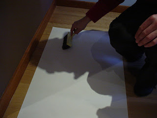 2)depois foi colando na parede mais ou menos onde achava que iam ficar melhor, modificando consoante achava necessário
