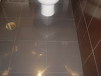 Foi então que tive a brilhante ideia de limpar o chão com... limpa vidros, ora se o chão era vidrado devia funcionar... E realmente foi espectacular (e voltei a chamar aquele chão de lindo...hehehe)