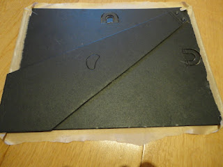 Depois de escolhido o tecido (escolhi forro por ser brilhante e dar o toque chiqu€ que queria...rsrsr), e colei-o na base da moldura